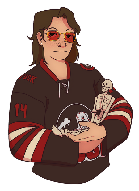 Leo Murrelet is a Baltimore-based illustrator specializing in character design and comic illustration. He graduated from MICA with a BFA in Illustration in May 2025.His favorite things to draw are period clothes and his geriatric dog. When he is not drawing, he can usually be found watching campy old horror movies, reading Archie comics, or making puppets.He is currently working on his first graphic novel, Faust.